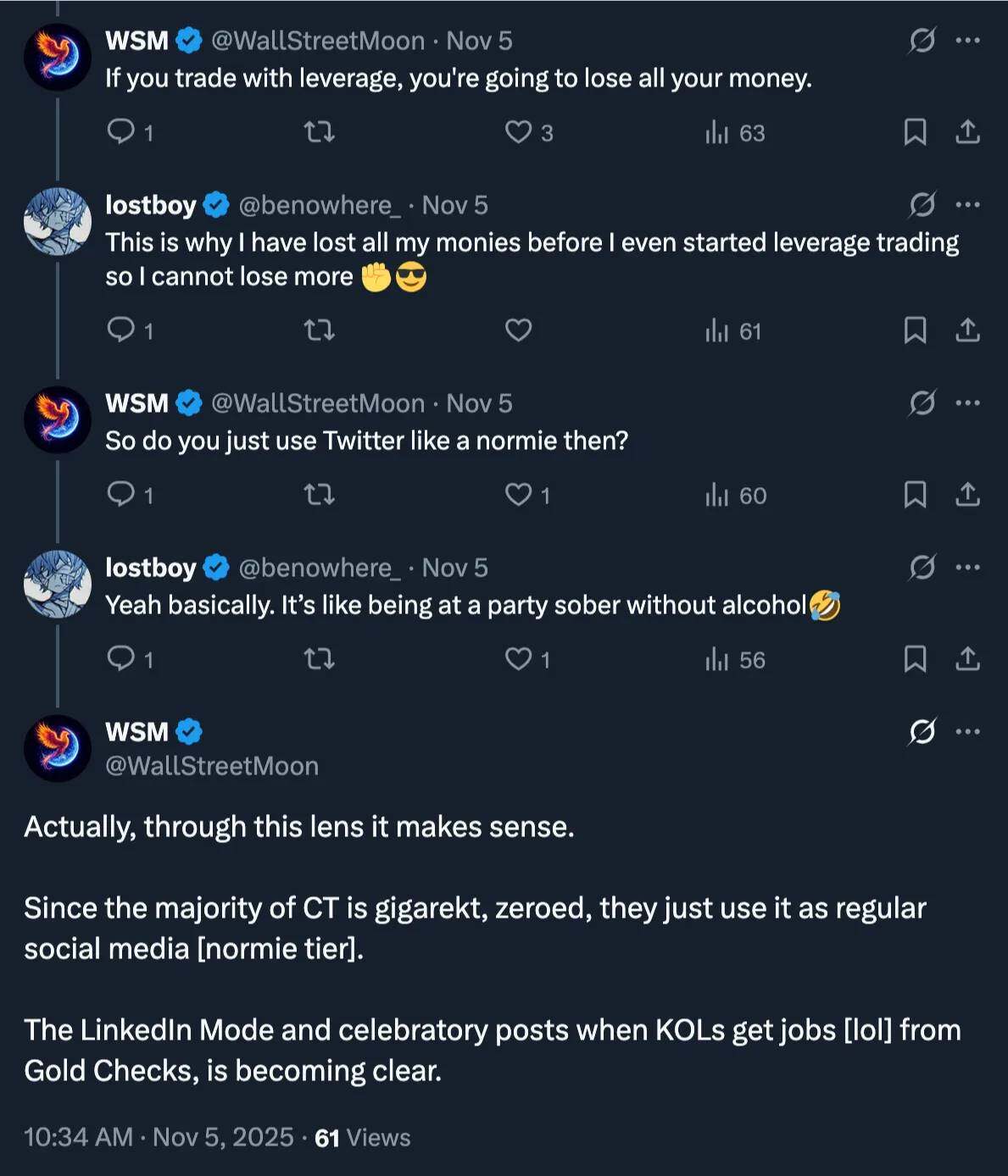 加密推特(CryptoTwitter)忙着讨好所谓的“关键意见领袖”(KOLs),而没有抓住这些黄金机会。到了 2025 年,他们还在舔这些 KOL,却还在抱怨为什么自己从未赚到钱。