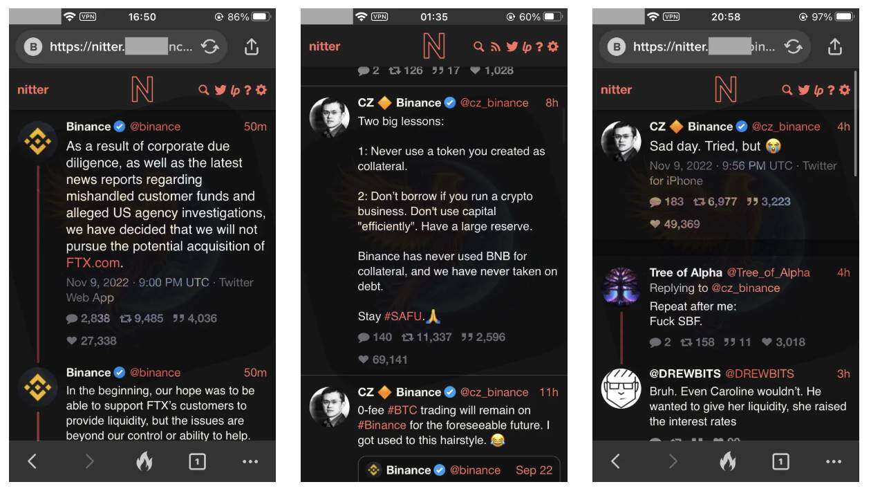 下面提到的界面叫 Nitter,它是一个本地化的第三方 Twitter 客户端,在埃隆·马斯克(ElonMusk)关闭 TwitterAPI 之前还能用。如今可能还有零星的服务器在运行,但非常不稳定,所以到了 2025 年,你基本上被迫使用原生 Twitter。