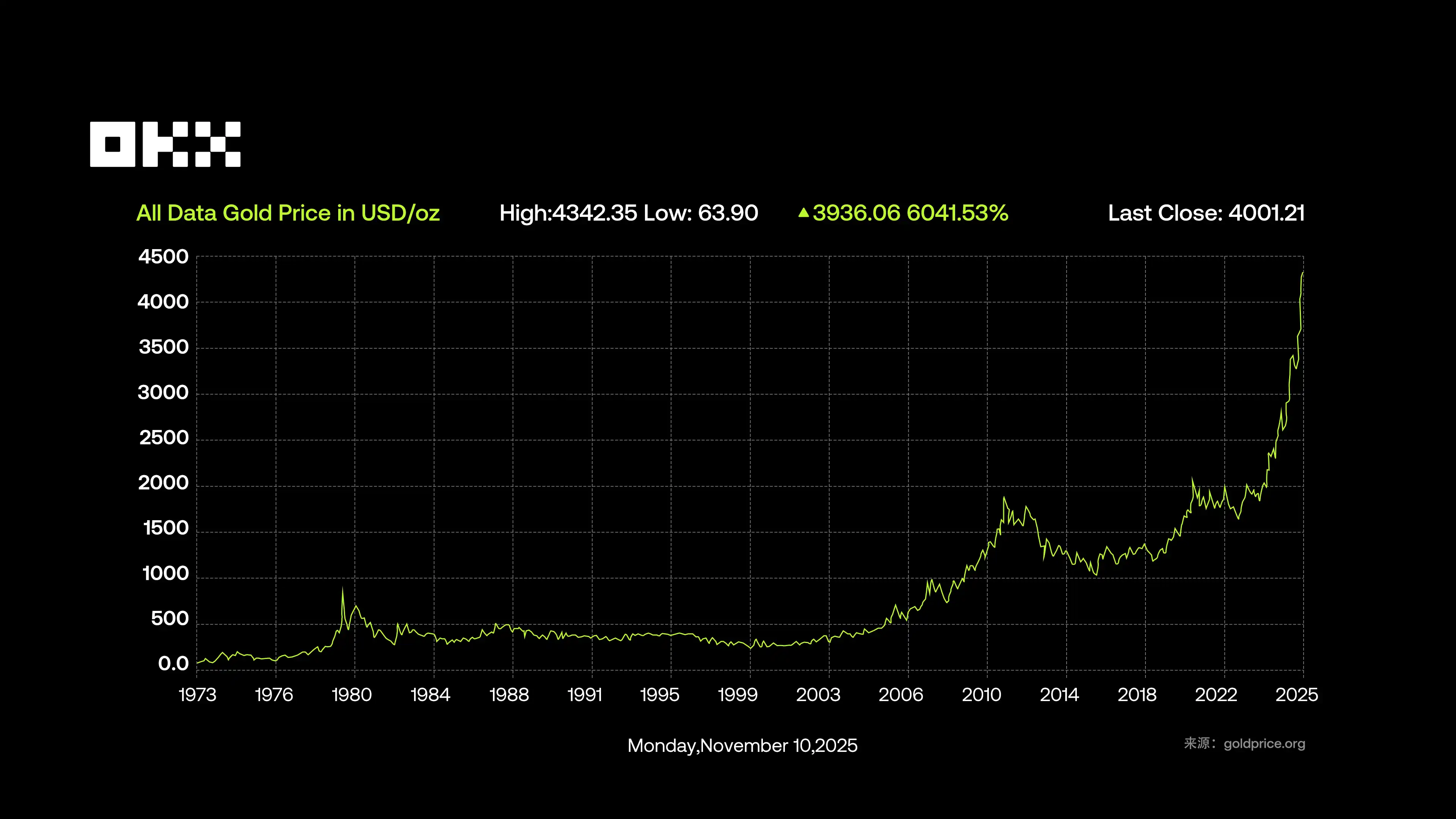 截至 2025 年 11 月 10 日,黄金现货价格已升至约 4075 美元/盎司,年内累计上涨 55.3%,创历史新高。价格上涨主要受到 地缘政治紧张、通胀预期以及央行持续购金 的推动——2025 年前三季度,全球央行净购金超过 600 吨。从市场规模来看,全球黄金总存量约 21.6-28.2 万吨(包括矿产、央行储备和珠宝等),按当前价格计算总价值约 27 万亿美元。全球年需求量约 4500–5000 吨,2025 年第二季度需求达到 1249 吨(价值约 1320 亿美元,同比增长 45%),预计全年需求将超过 5000 吨。