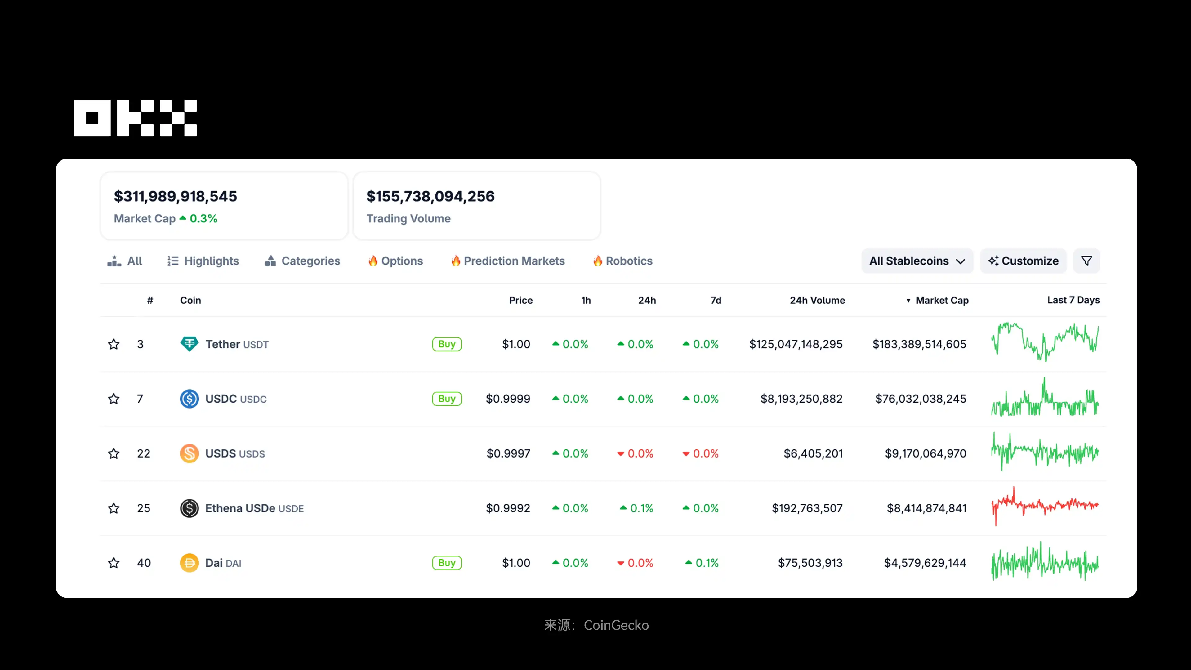下表为全球主要稳定币概览(截至 2025 年 11 月 11 日)