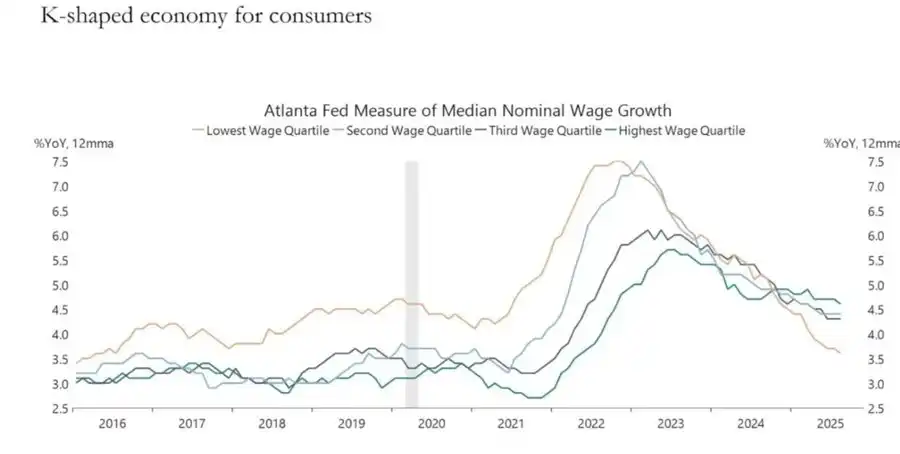 • K 型经济正在逐渐演变成一个政治问题。对越来越多的人来说,社会契约已不再可信,这最终会在政策层面体现出来。