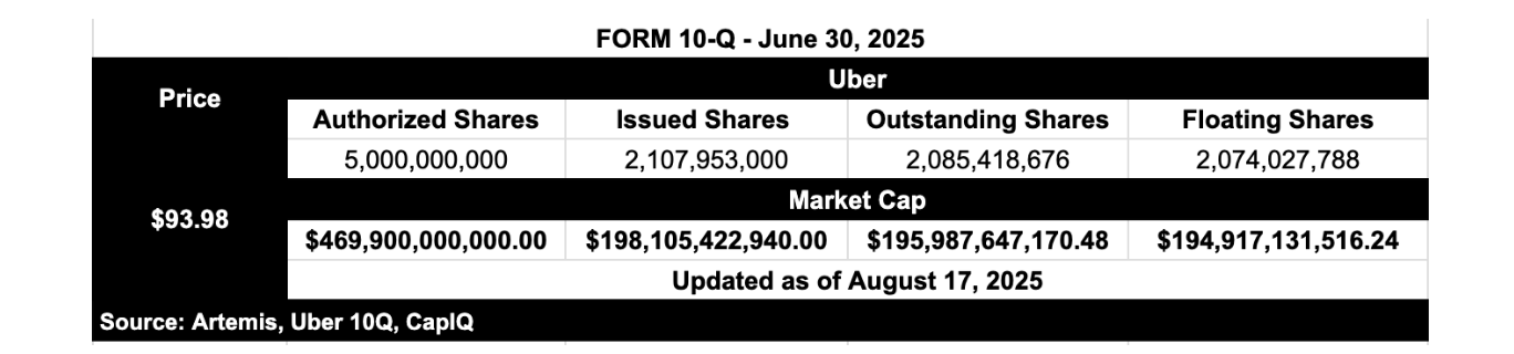 - 授权股数:50 亿股 → Uber 依法可发行的最高股份限额。公开市场投资者几乎从不参考授权股数;