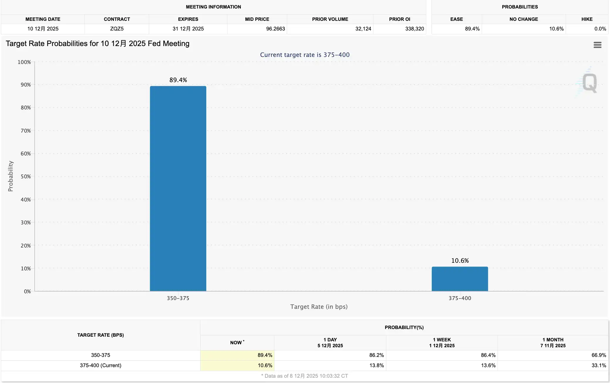 如果落地,这将是 9 月以来连续第三次降息,届时联邦基金利率将降至 3.5%-3.75% 区间。