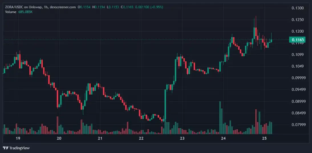 聪明钱与大户资金开始涌入,推动 ZORA 在单日内上涨 46%,创下 0.14 美元的历史新高。