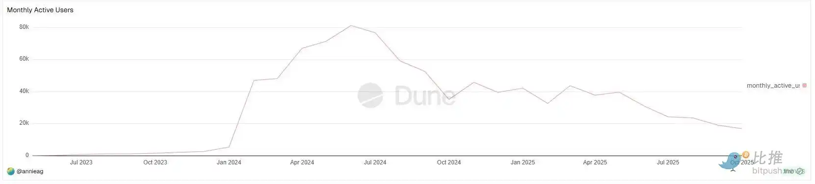 · 到 2025 年下半年,月活已回落至 不足 2 万
