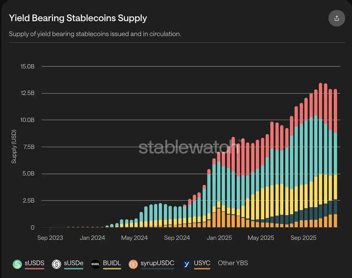 今年,YBS 的总供应量实际上翻了一倍,达到了 125 亿美元,这一增长主要由收益提供者推动,如 BlackRock BUIDL、Ethena 和 sUSDs。