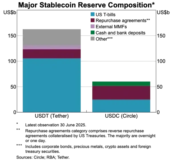 USDT 和 USDC 的资产储备对比
