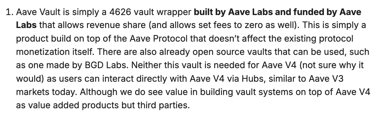- 「对于 Aave V4 来说,这个金库并非必需……用户可以通过 Hubs 直接与 Aave V4 进行交互。」