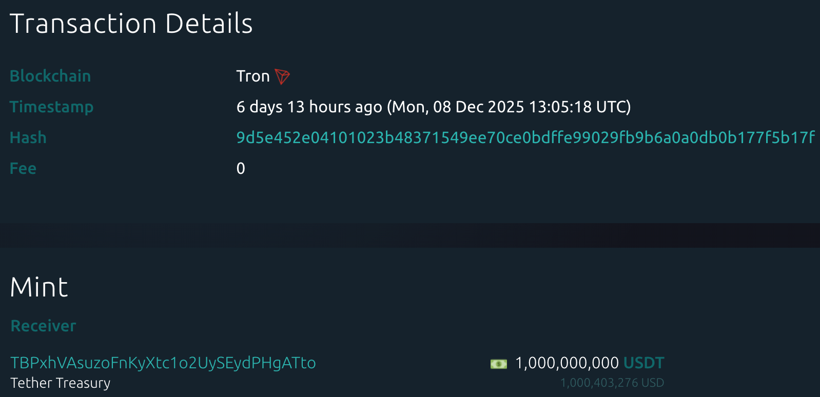据 Whale Alert 数据显示,本周 USDC Treasury 总计增发 26.67 亿枚 USDC,Tether Treasury 本周总计增发 10 亿枚 USDT。本周稳定币增发总量为 36.67 亿枚,较上周稳定币增发总量(39.55 亿枚)下降 7.28%。