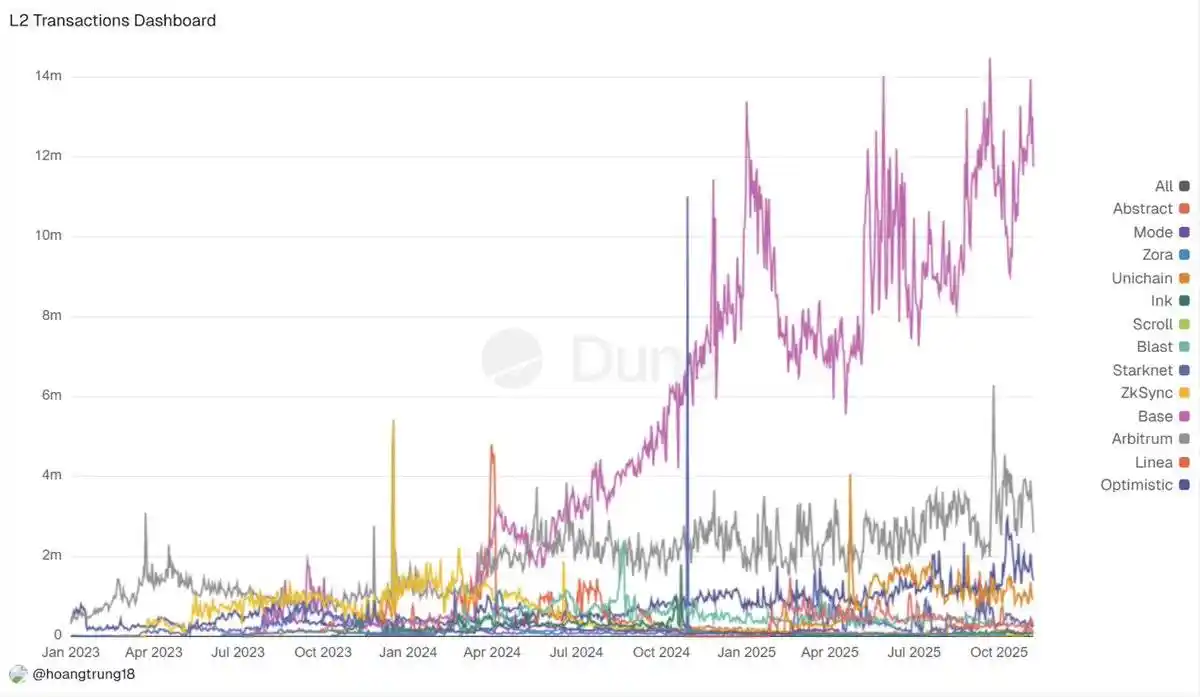 2025 年,以太坊「以 Rollup 为中心」的路线图与市场现实发生了碰撞。L2Beat 上曾经有数十个 L2 项目,如今演变为「赢家通吃」的局面:@arbitrum、@base 和 @Optimism 吸引了大部分新增锁仓量(TVL)和资金流动,而规模较小的 Rollup 项目在激励措施结束后,其收入和活动量下降了 70% 至 90%。流动性、MEV 机器人和套利者追随深度和紧密的价差,强化了这一飞轮效应,使边缘链的订单流枯竭。