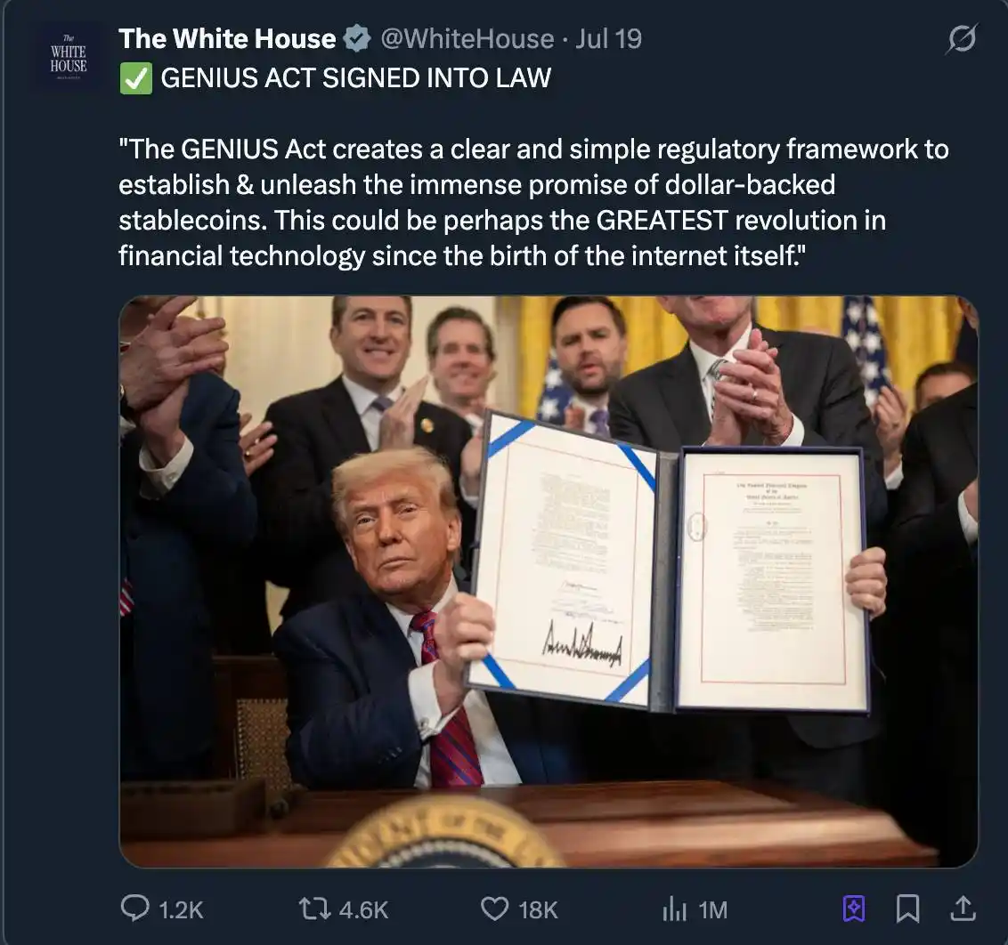 稳定币从「影子银行」转变为受监管的现金等价物;像花旗银行(Citi)和美国银行(BoA)这样的银行现在可以在明确规则下运行代币化现金试点;类似 Polymarket 这样的平台可以在商品期货交易委员会(CFTC)的监管下重新上线;美国现货比特币 ETF 能够在没有生存性风险的情况下吸引超过 350 亿美元的稳定资金流入。