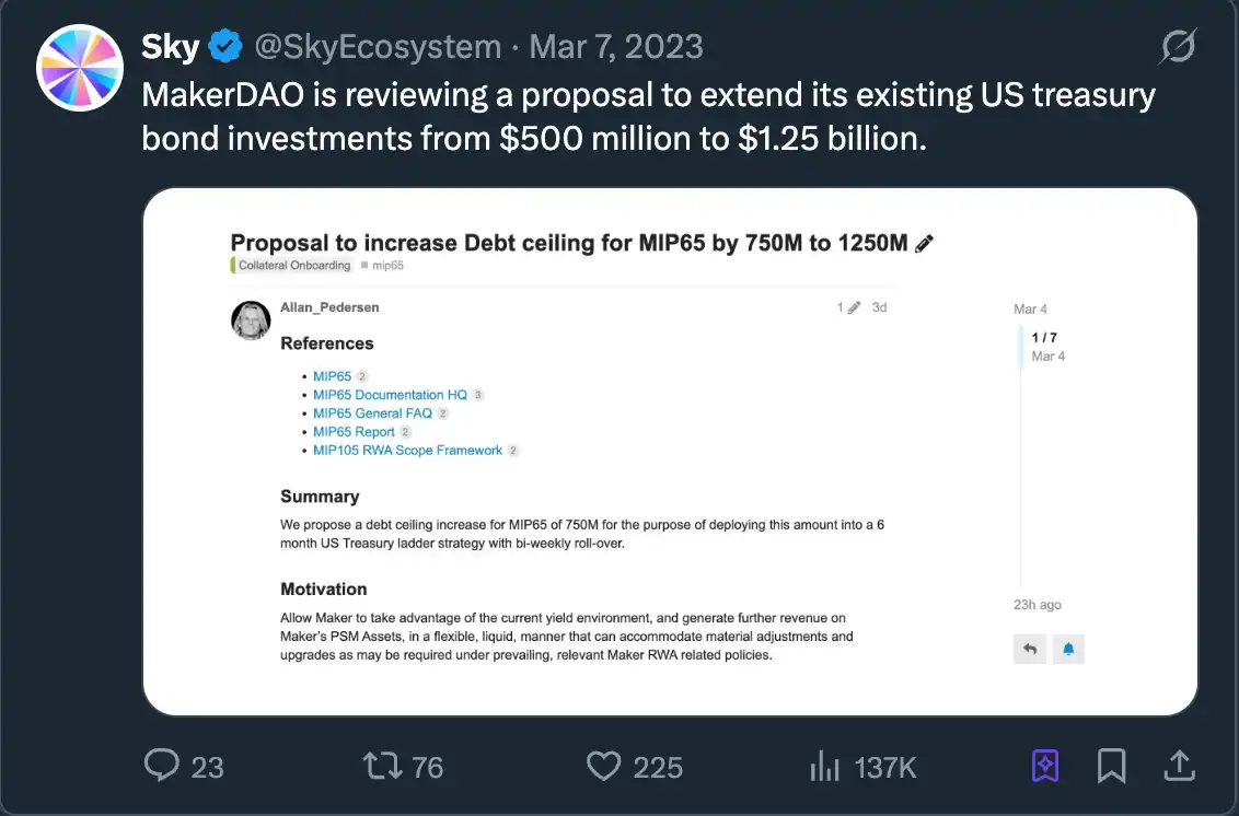 与此同时,稳定币发行方开始用短期票据支持储备,而诸如 Sky(前身为 Maker DAO)这样的协议也将链上的商业票据集成到其抵押资产池中。