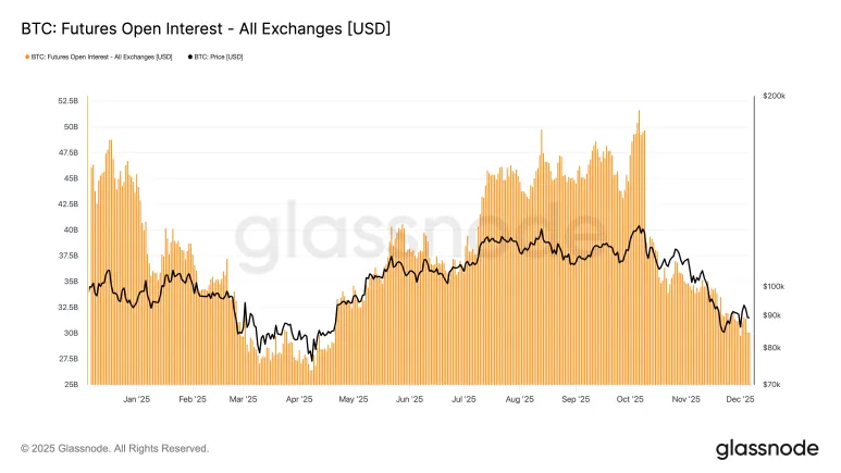 期货市场的未平仓合约(OI)已回落至 4 月低点。这一下降表明狂热的杠杆赌注已被清除。