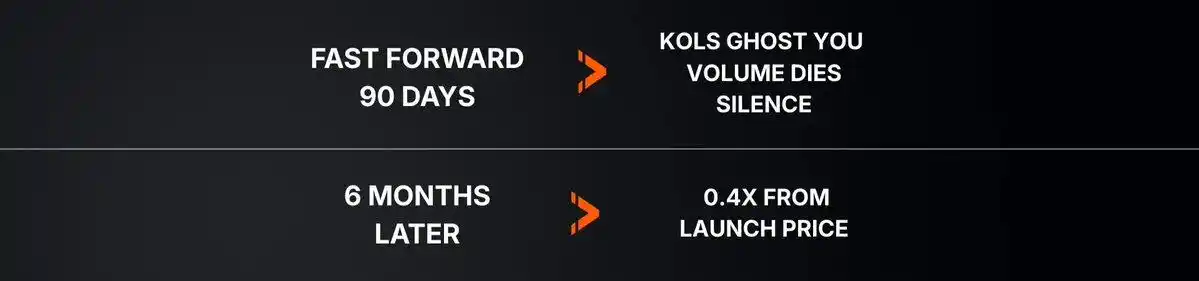 投机者们知道游戏已经失灵。他们正持观望态度。与此同时,创始人却不断将 60% 的预算投入到 Discord 机器人、Twitter 赠品和 KOL 宣传上——在统计上无关紧要的指标上烧钱。
