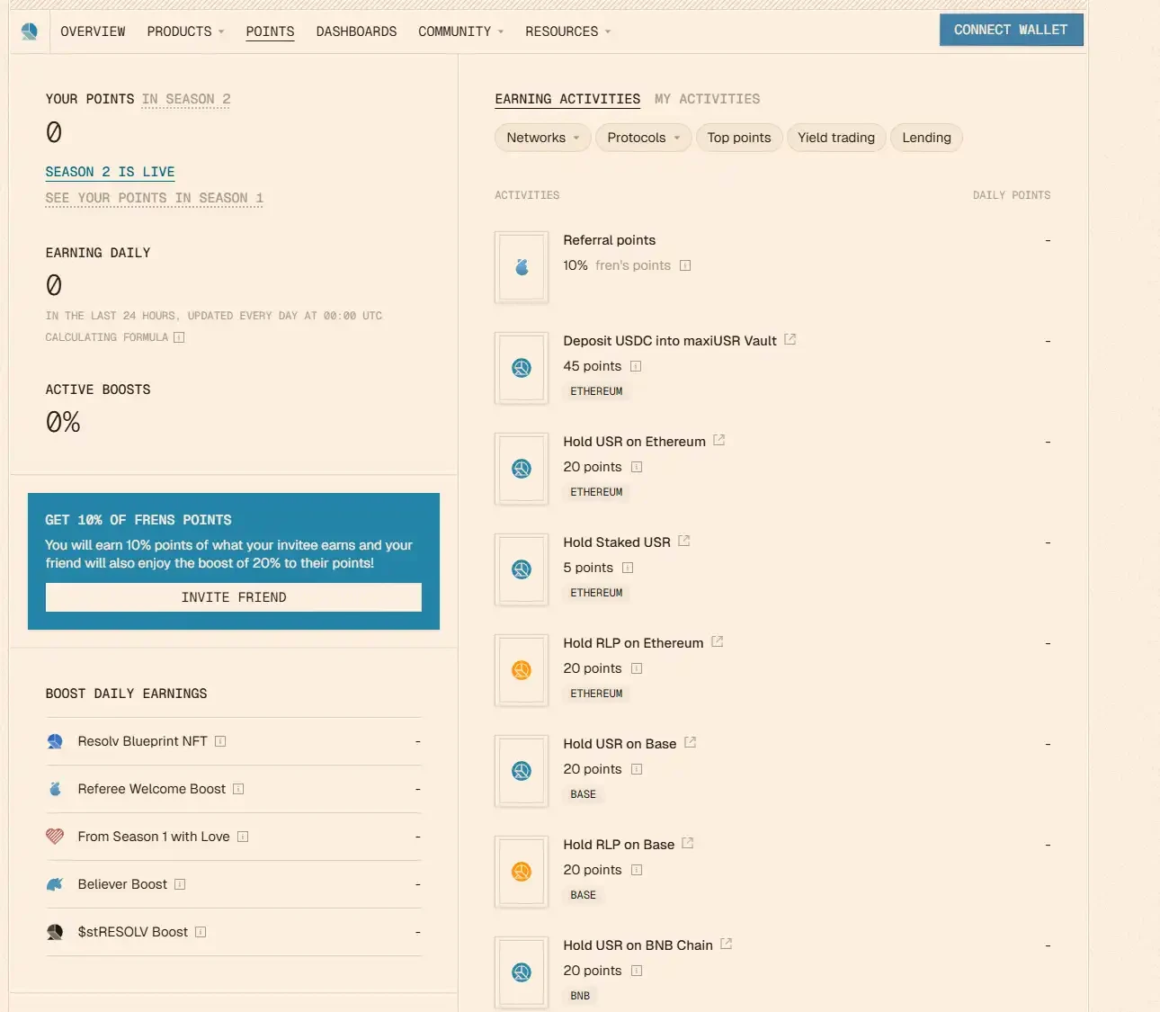 该协议有积分系统,目前积分活动已经进行到了第 2 季,完成项目方给定的一系列任务即可获得积分。