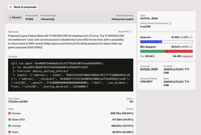 当前位置:首页 > 资讯 > Curve治理权变局:1700万CRV拨款提案遭否,资本方成新决策核心