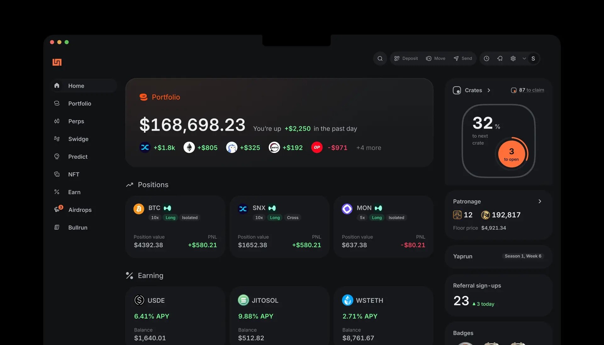 从产品定位来看,Infinex 并非单一功能型应用,而更接近一个全栈式的 DeFi 服务入口。其核心能力包括:作为覆盖多链的非托管钱包承载用户资产;作为统一界面,聚合并接入多种链上 DeFi 协议与服务;同时通过高度抽象的交互设计,将地址管理、跨链桥接、助记词、Gas 费用等复杂概念隐藏在后台,使用户在无需理解底层机制的情况下,即可完成与 DeFi 应用的交互,整体使用体验更接近 CeFi 产品。