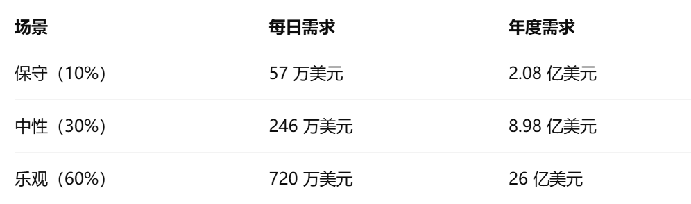 - 每日需求:720 万美元
