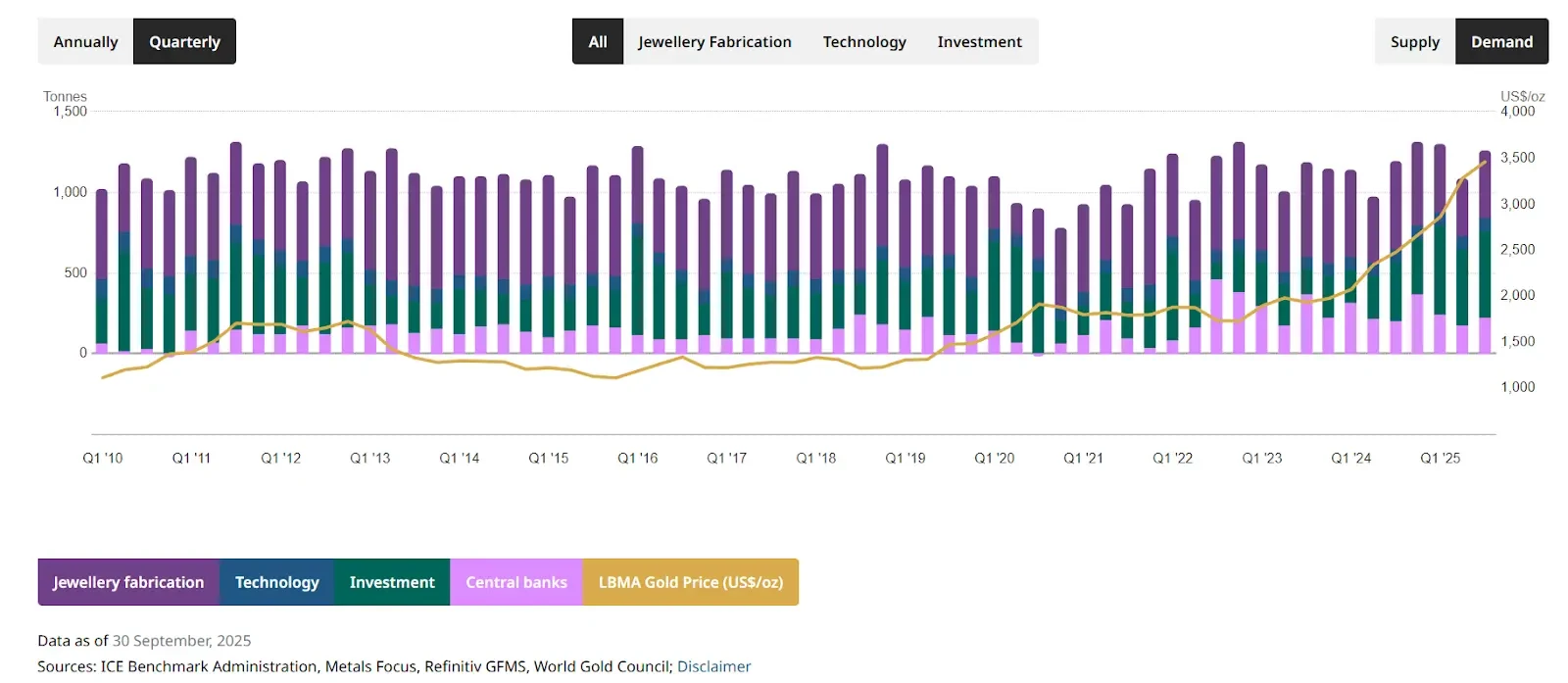 作为对比,黄金的年度供应增长率通常被估计在 1%–2% 区间,而法币体系的货币扩张速度则取决于央行政策,而非预先写入代码的固定规则。