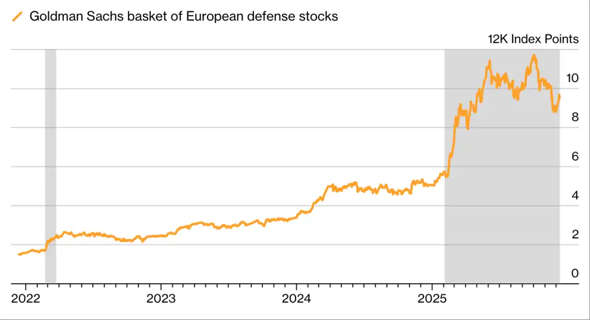 从护目镜制造商、化学品生产商,到一家印刷公司,与国防沾边的股票均被疯狂抢购。截至 12 月 23 日,彭博欧洲国防股指数年内涨幅超 70%。这股热潮还蔓延至信贷市场:即便是与国防「间接相关」的企业,也吸引了大批潜在贷款人;银行甚至推出「欧洲国防债券」——以绿色债券为模板,但资金专门用于武器制造商等主体。这一变化标志着「国防」从「声誉负债」重新定位为「公共产品」,也印证了一个道理:当地缘政治转向时,资本流动的速度往往快于意识形态转变。
