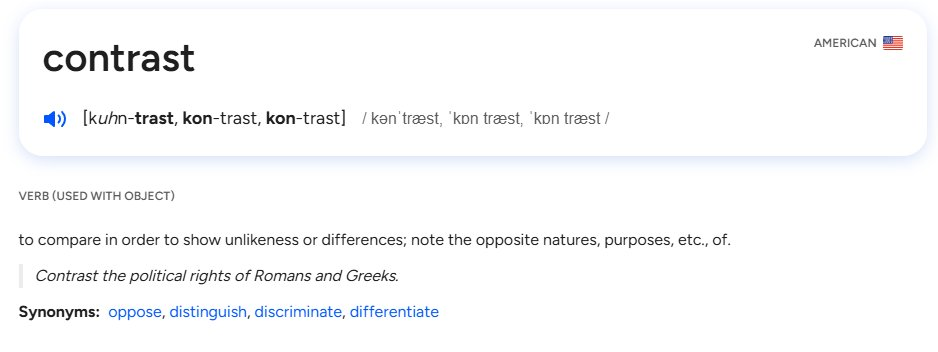 本质上,对比是一种转变,比如: