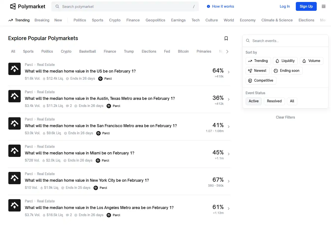 Polymarket CMO Matthew Modabber 表示:「预测市场最适合那些有清晰、可验证数据的事件。Parcl 的每日房价指数为我们提供了透明、一致的结算基础,房地产应成为预测市场的一级类别。」