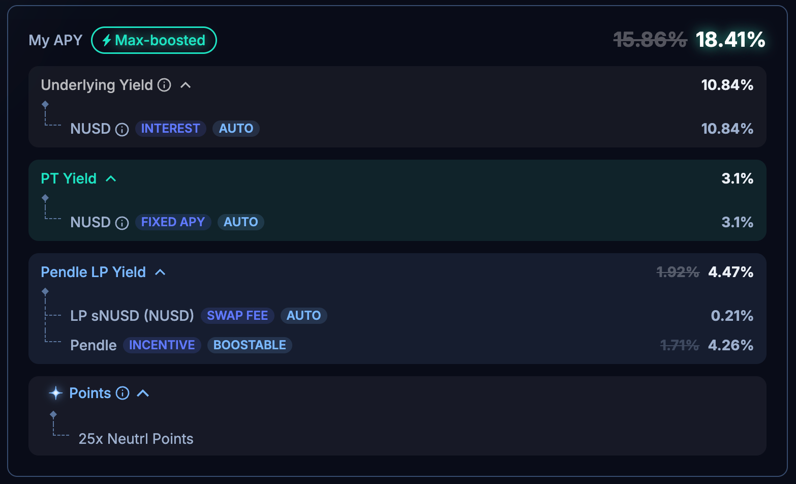 链上策略四:Pendle Neutrl(sNUSD) LP,最大年化 18.41%