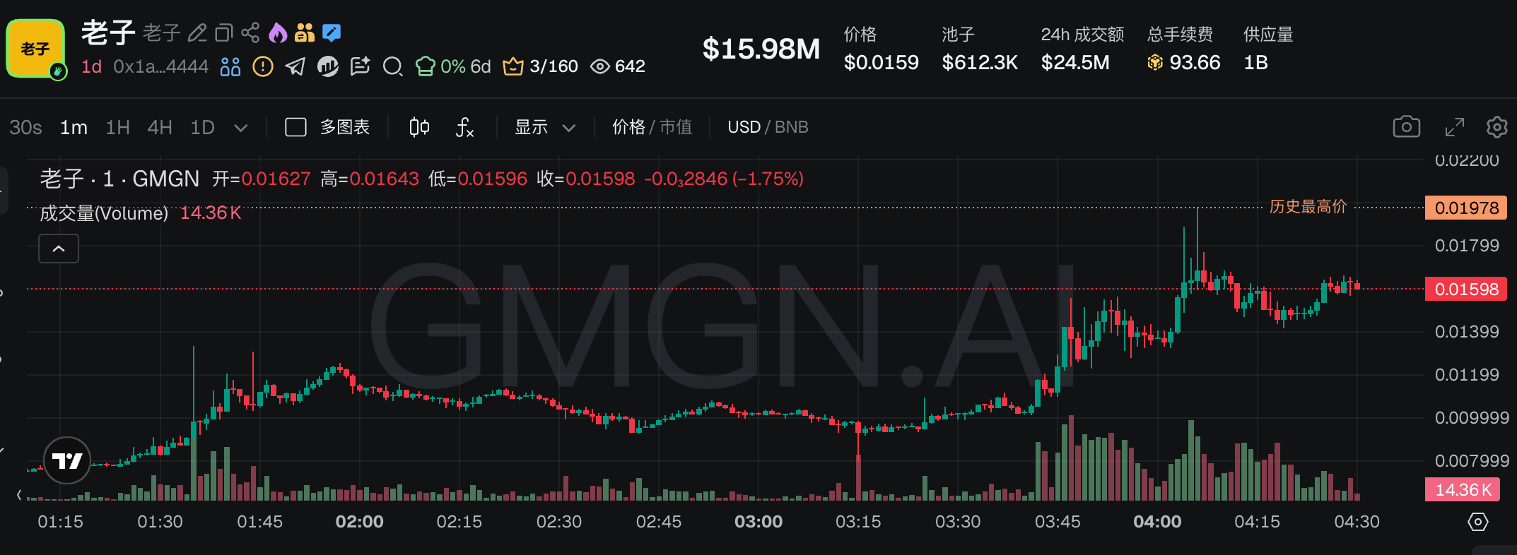 由于何一老家为四川,在此次的“BSC 生态中文 Meme 热潮”中,四川方言相关的 Meme 也在其中占据一席之地,而四川方言中类似“我”的口头禅——“老子”,兼具与传统名人老子同名的文化属性,因而市值快速上涨,此前一度接近 2000 万美元。