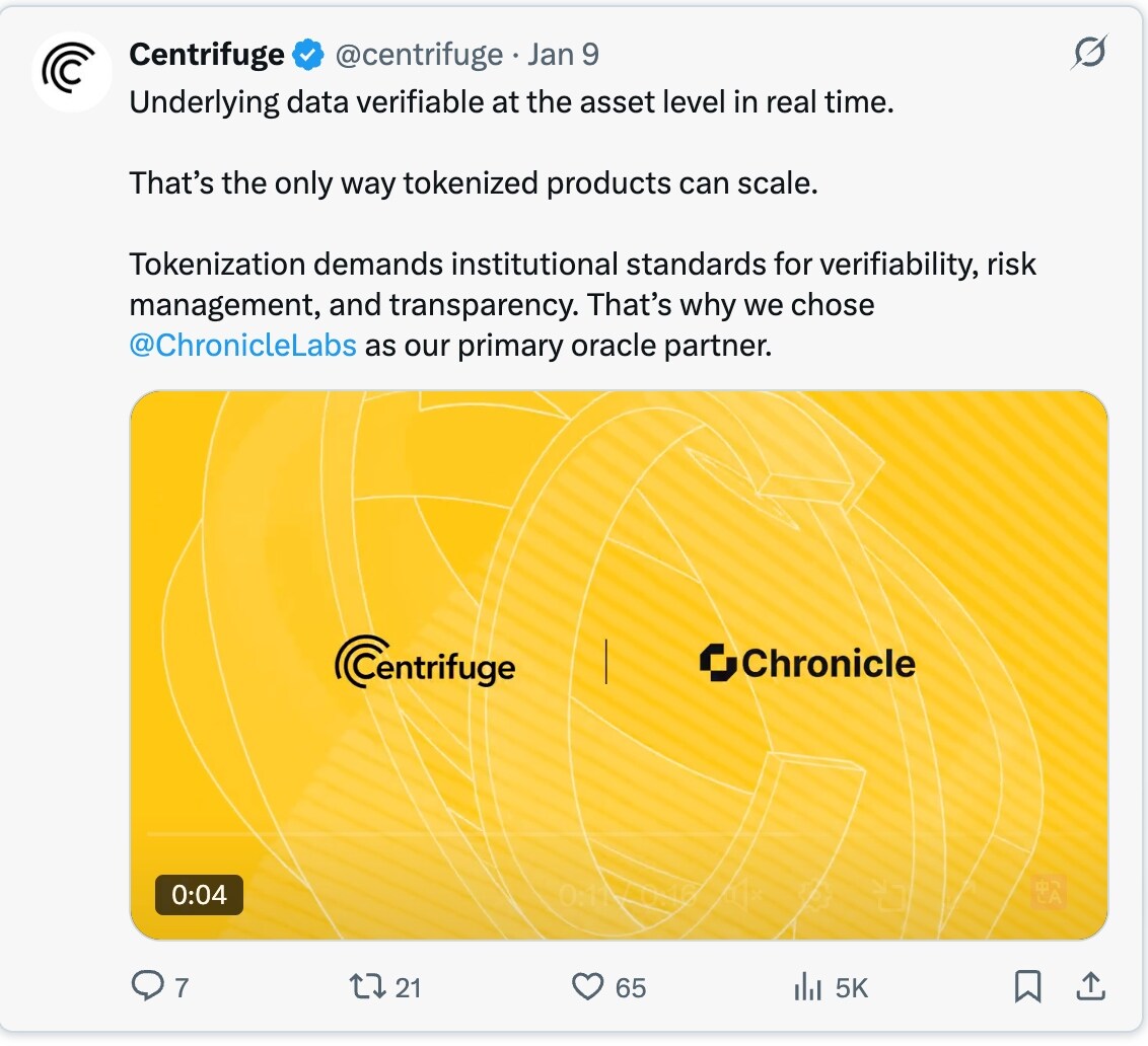 我一直在关注区块链领域的预言机问题,而 Chronicle Labs 的方法是首个能够满足机构需求的解决方案:提供可验证数据,同时不牺牲链上效率。1 月 8 日的公告中还附带了一个视频演示,展示了这一解决方案已经投入实际应用,而不是未来的承诺。