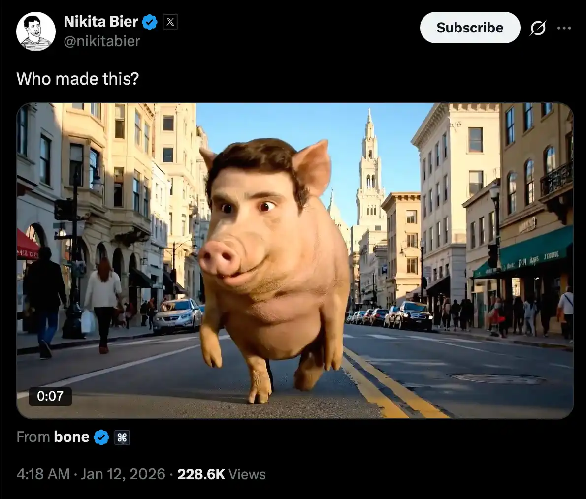 @boneGPT 在去年 11 月最先创作出的「Nikita Boar」meme 因为本次事件而爆火,这个 meme 就是把 Nikita 本人 P 成了一只猪。Nikita 在面对这个 meme 时展现出了币圈喜欢的应对方式——亲自下场玩梗。