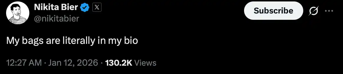 Nikita Bier 经常出没在各种和 X 产品问题相关的推文下,作为产品负责人他每天也算在 X 上「高度冲浪」。本来他只是回答了一个简单的问题,有人认为在 iMessage 分享推文链接时,链接封面图直接显示推文内容会更好,他回复说这是 iMessage 获取错误或者包含敏感推文的内容才会显示缺省封面图。而在这时候,一个币圈玩家在 Nikita 的回复下面接着问了一嘴,「Yo,币圈推特怎么了?我既看不到我关注的人,也看不到我的朋友们(所发的内容)」