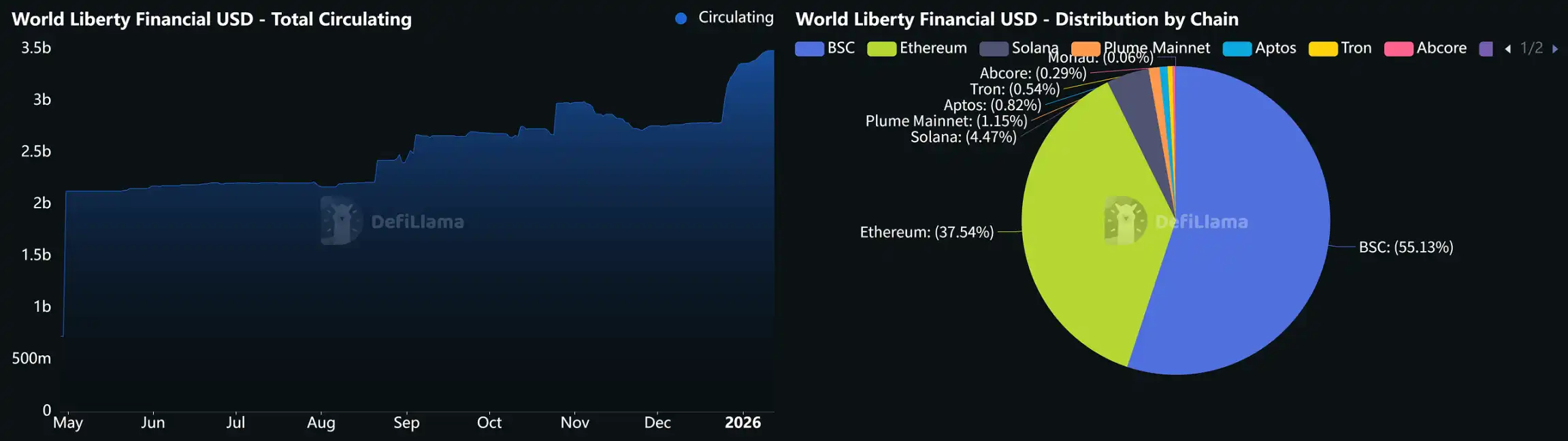 WLFI 旗下美元挂钩稳定币 USD1 在一年内流通量突破 34 亿美元(CoinMarketCap 数据),成为增速较快的美元挂钩稳定币之一。