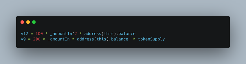通过上述分析,攻击者的攻击思路是通过输入巨大的 _amountIn ,使 v12 + v9 溢出成一个很小的值,最后使(v12 + v9) / v6 == 0。