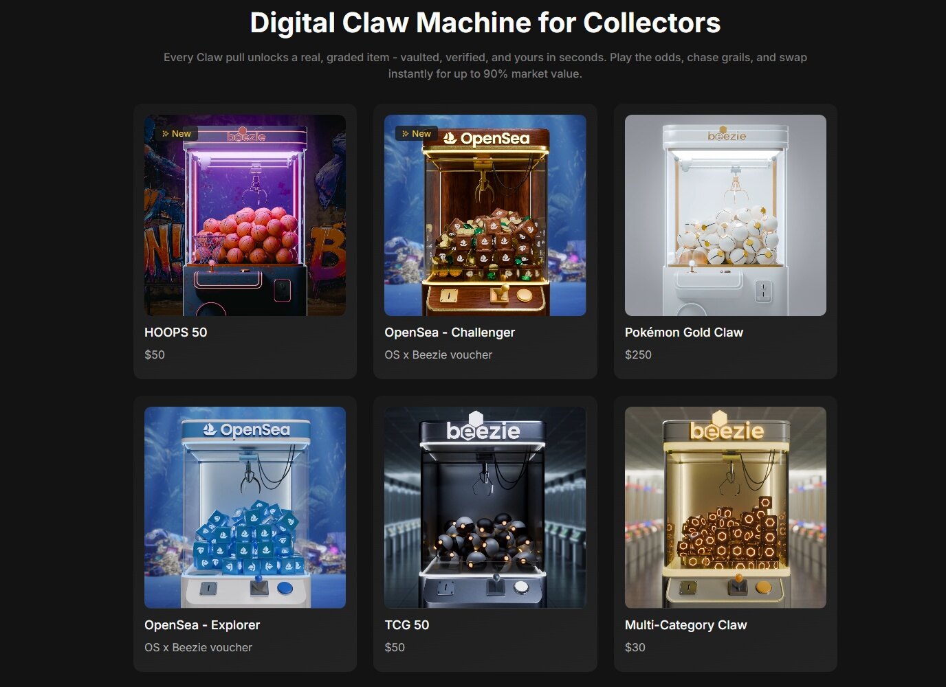 Beezie 是一个 Web3 实物收藏品平台,专注于把现实世界的高价值 graded 收藏品(尤其是卡牌)带到链上,实现数字化所有权、即时交易和游戏化获取体验。