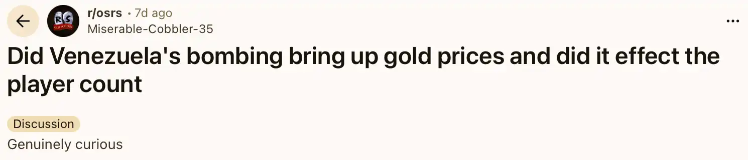 美国突袭委内瑞拉并逮捕了其总统马杜罗后的第 9 天,一款名为 RuneScape 的游戏也再一次创下了历史。在这天,RuneScape 同时在线玩家数量超过 25.8 万名,是这款游戏 25 年以来的历史最高值。