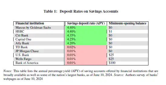 Van Buren Capital 普通合伙人 Scott Johnsson 援引了加州大学洛杉矶分校的一篇论文表示,自 2008 年金融危机致使银行业信誉受损以来,美国的商业银行在吸储业务方面已分化为两类截然不同的形态——高利率银行和低利率银行。