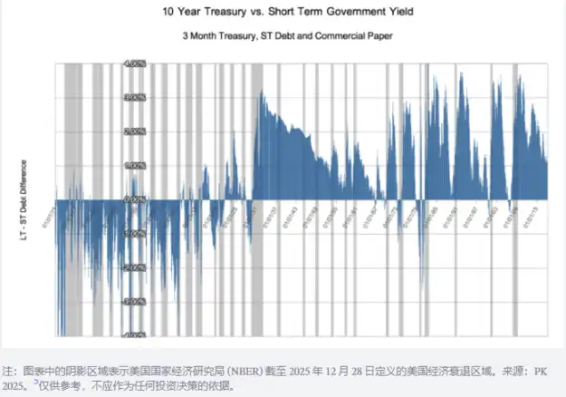 人工智能及其他四大创新平台所带来的通缩效应将不断累积,并塑造出一种经济环境,类似于截至 1929 年的 50 年间,由内燃机、电力和电话引发的上一次重大技术革命时期。在那一时期,短期利率与名义 GDP 增速同步,而长期利率则对技术繁荣所伴随的通缩暗流作出反应,使收益率曲线平均倒挂约 100 个基点,如下图所示。