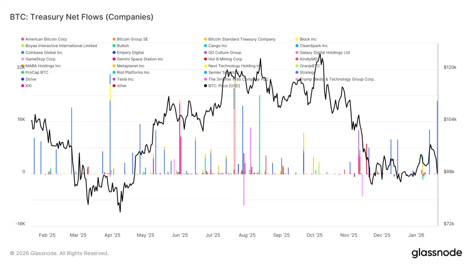 整体而言,数字资产财库资金流在零线附近窄幅波动,表明大多数企业库务目前处于观望或机会性操作状态,而非系统性增持。这与早期多个企业协同买入、推动趋势加速的阶段形成鲜明对比。