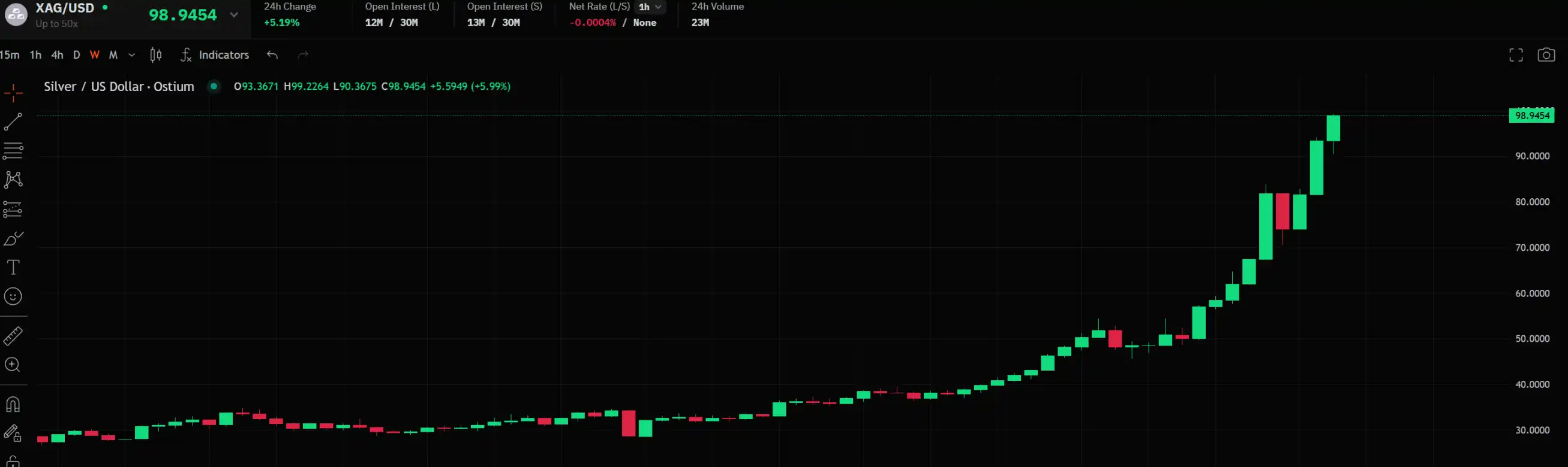 1 月 23 日,黄金和白银延续了不小涨势,现货黄金价格徘徊在每盎司 4956 美元附近,白银则达到每盎司 98.79 美元,逼近 100 美元关口,双双均创下其历史新高。相比之下,比特币则反复在 9 万美元附近震荡徘徊。