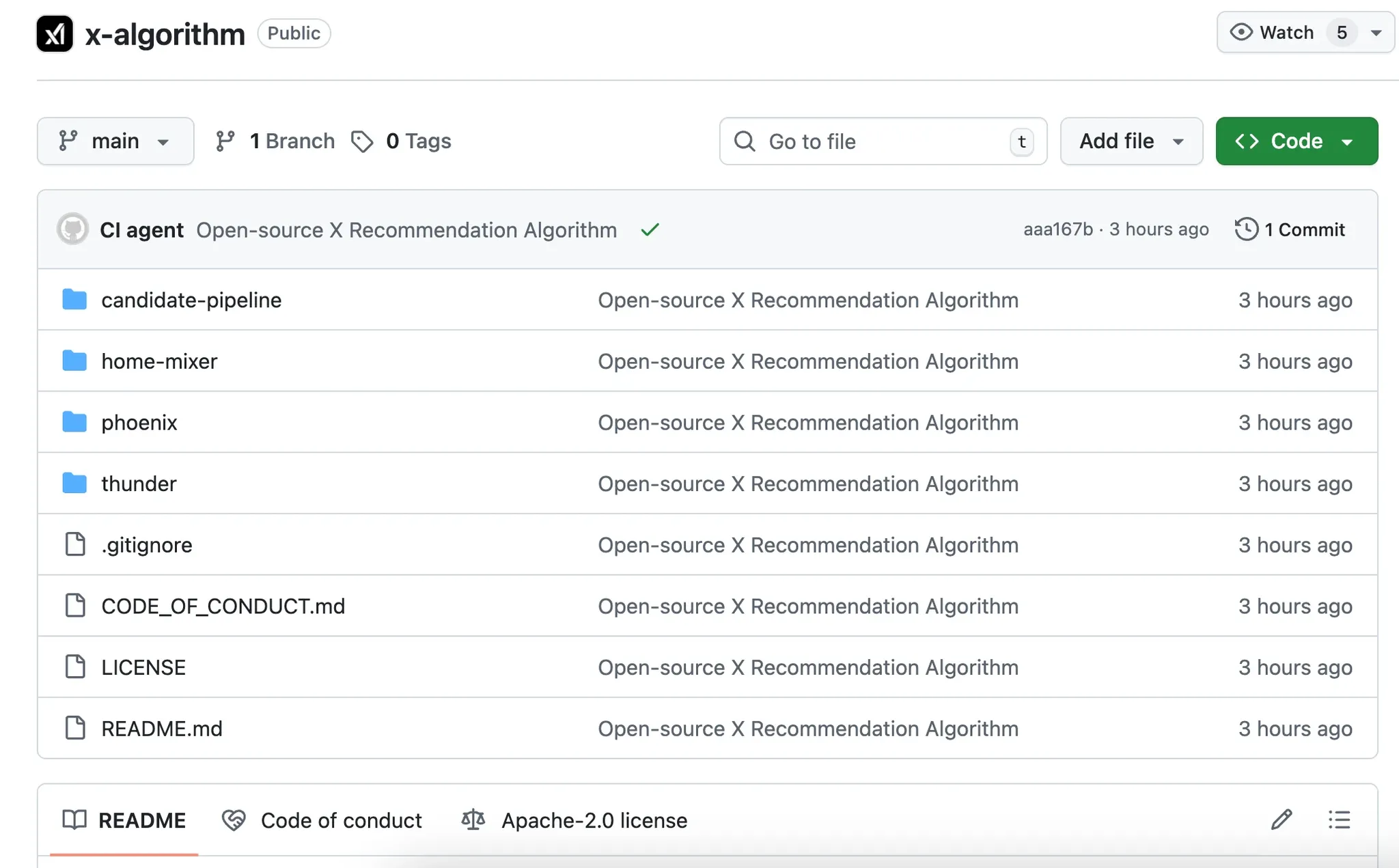 X 已公开的最新平台算法 Github 仓库首页