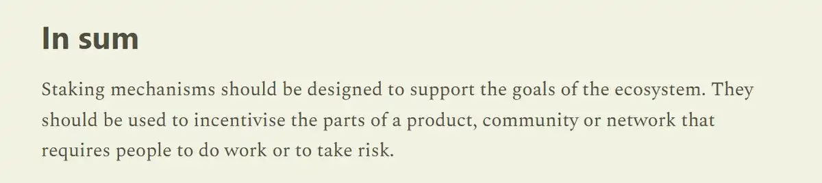 或者,从同一篇文章来看:「质押机制应该被设计来支持生态系统的目标」