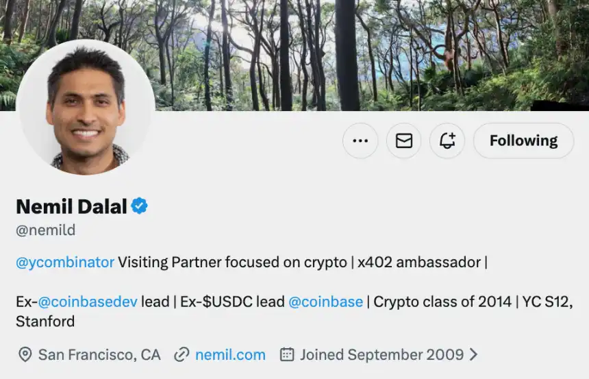 而且别忘了,YC 在 2012 年就投了 Coinbase,Coinbase 是 USDC 的联合发起方之一。且负责 YC 加密业务的合伙人 Nemil Dalal,此前正是 Coinbase 的产品总监。这种「亲缘」关系,或许也促使了 YC 天然地更信任并支持 USDC 的生态。