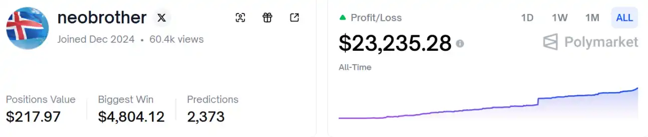 上图这位名叫 neobrother 的交易员,在 Polymarket 上疯狂下注各个城市的天气,目前累积盈利超 2 万美元。他并非盲目投机的赌徒,而是一个极具数据驱动力、垂直细分且擅长赔率杠杆的高手。neobrother 的交易记录几乎清一色集中在气象预测(Weather Markets),特别是全球各大城市(布宜诺斯艾利斯、迈阿密、安卡拉、芝加哥、纽约)的日最高气温。