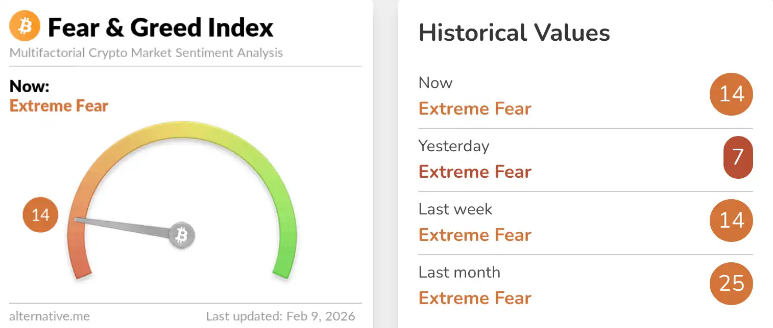 经历上周加密行情大暴跌后,比特币反弹力度有限,山寨币整体表现依然低迷,资金风险偏好明显收缩。市场情绪的变化也验证了这一点:根据 Alternative.me 数据,上月加密市场恐惧与贪婪指数为 25,而昨日一度跌至 7,即便今日小幅回升,市场仍处于「极度恐惧」阶段。