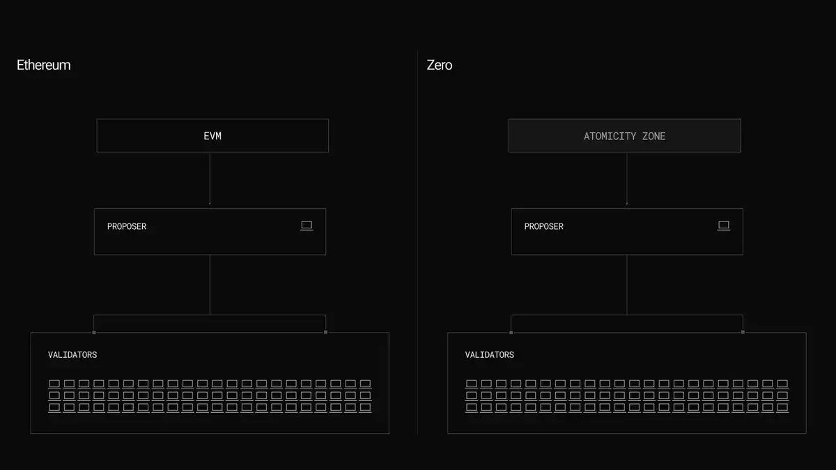 Zero 的架构和现有公链不太一样。大多数链是一条路跑所有车,Zero 把链拆成了多个独立运行的分区,LayerZero 管它们叫 Zone。
