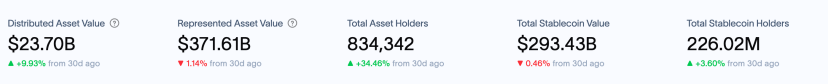 - 合规阶段,2023-至今: 合规开始明确/有些 RWA 资产迅速扩展 (稳定币,US 国债)等等,并且新资产类型与平台都有起色。