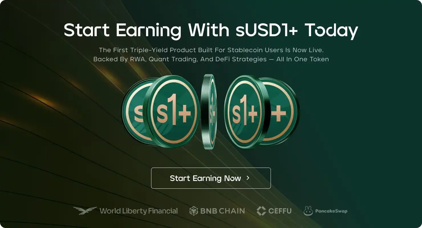 这是第一层。在用户完成投资之后,我们还会支持他们进一步管理这些资产,比如进行交易、抵押借贷、参与多种收益策略的组合等——这些都可以在平台内一站式完成。我们希望构建的,不只是一个「产品池」,而是一个完整的资产运作宇宙,让用户在一个平台上实现从投资选择到资金管理的全流程体验。近期我们也推出了 Lorenzo Earn,首个上线的 Earn 产品是基于 PancakeSwap V3 的 LP Vault,用于将 sUSD1+ 与 USD1 等资产部署至 BNB Chain 上的自动化做市与流动性策略中,作为 sUSD1+ OTF 之外的收益增强路径。