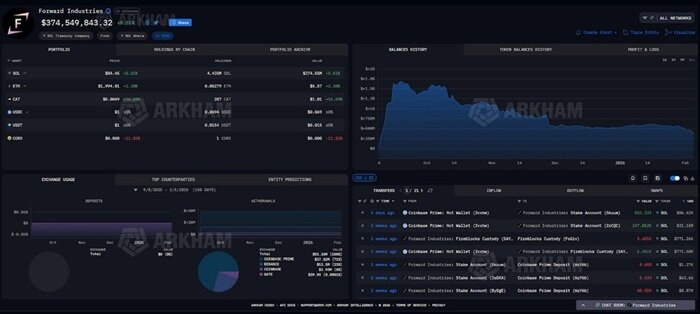 2025 年,Solana 财库公司成为关注焦点。由于持币情况高度公开,其中最大的 SOL 持有者是 Solana 财库公司 Forward Industries(如下图所示),该公司目前持有 690 万枚 SOL 代币(价值 5.83 亿美元),占 SOL 总供应量的 1.115%,其他 Solana 财库公司则远远落后,Forward Industries 之后的九家公司合计仅持有 SOL 总供应量的 1.5%。