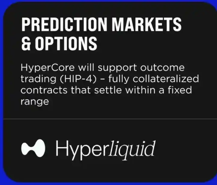 Hyperliquid 的 HIP-4 将"结果交易"(包括二元期权和预测市场)直接整合进自己的核心交易引擎 HyperCore 中。
