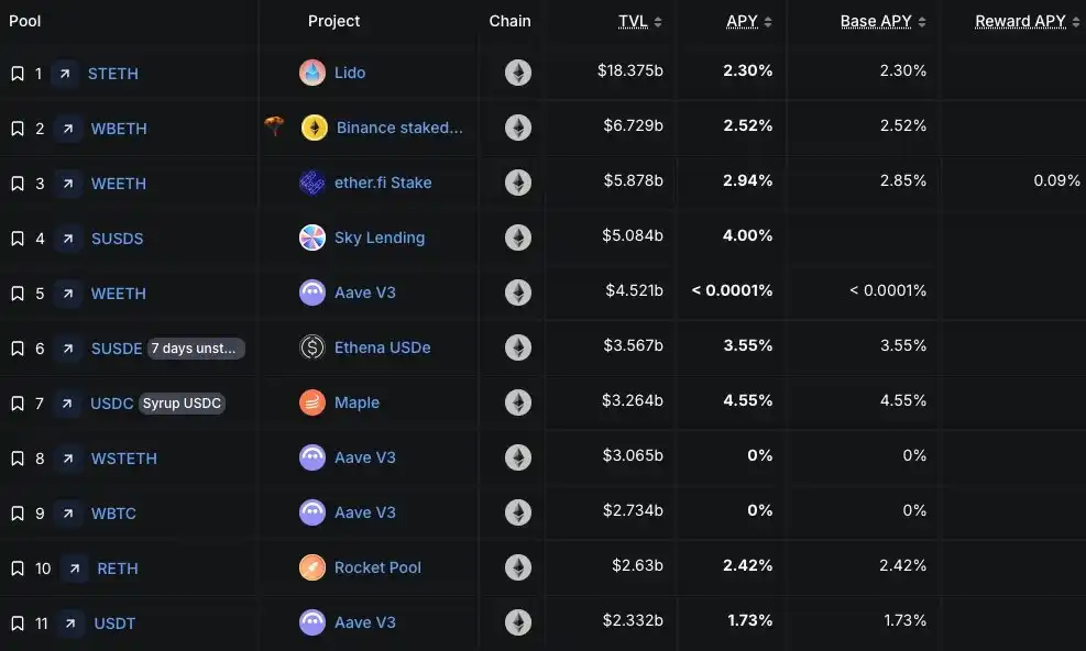 但这些链上资本的平均收益率只有 2–4%,而传统货币市场基金能给 4.1%,连 Lido 的 180 亿美元 stETH 池也才~2.3%。